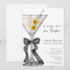 A Tini Bit In Love Dirty Martini Bridal Shower Invitation - This stylish and modern bridal shower invitation blends elegance with a unique touch. Featuring a watercolor illustration of a dirty martini with two green olives adorned with a chic black bow on a sleek white backdrop, the design combines graceful script calligraphy and refined block lettering. It's the perfect invitation to set the tone for an unforgettable celebration with loved ones honouring the bride-to-be. Personalise this template with your event details and choose from a printed or instant digital download option—ideal for sharing via email, text, or social media.