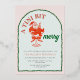 This design features Christmas cocktail theme party "A Tini Bit Merry" with a martini glass and a Santa sitting on it.
