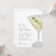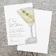 A watercolor green martini glass with olives sits on the right side, bringing a light and grown-up vibe to your celebration. The layout is vertical, with party details displayed in a clean mix of script and classic serif fonts for a simple, minimal look.