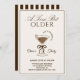 Celebrate in style with a modern, stylish twist on a classic cocktail lounge vibe—this birthday invitation features a sleek espresso martini glass adorned with a playful coquette bow, set against elegant vintage dark brown typography that feels just a tini bit older, like the charm of a well-loved speakeasy. The design evokes the sophistication of a dirty martini, balancing timeless glamour with contemporary flair. On the back, crisp brown stripes add a chic retro finish, making this invitation the perfect blend of polished elegance and playful indulgence for an unforgettable adult birthday celebration.