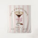 A sophisticated wall tapestry especially for a birthday celebration featuring the popular espresso martini theme. The martini is topped with a frothy layer of foam and coffee beans and is tied with a pink chiffon bow on a feminine pink and ivory beige striped background. These details add to the vibe of indulgence and celebration and also has a bit of a retro look and feel! Personalise this very special birthday tapestry with your guest of honour's name and the party date. It makes a great backdrop for photo ops at your party.