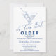 A Tini Bit Older Modern Minimal Blue Birthday Party Invitation - throw a trendy and minimalist birthday bash with this blue martini drink themed birthday party invite. Featuring a martini glass with olives and chic script calligraphy. Perfect for a woman's 21st birthday, 30th birthday, 40th birthday, 50th birthday or any milestone birthday celebration. Available as an instant digital download template perfect for sending via text or social media.