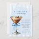 A Tini One Is on the Way Boy Baby Shower Invitation - Celebrate the upcoming arrival of a little bundle of joy with our A Tini One Is on the Way baby shower invitation. This charming design features an espresso martini, elegantly adorned with a delicate blue bow, setting the tone for a modern yet whimsical celebration. Invitation also features a trendy blue coastal stripe background. Available with or without background. The modern calligraphy and stylish typography give the invitation a sophisticated and contemporary touch, while the soft blue hues create a perfect, welcoming vibe for the baby boy who's about to make his grand entrance. It’s the perfect blend of warmth, style, and excitement to mark this special occasion!