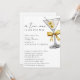 A Tini One Is On The Way Simple Minimal Yellow Martini Baby Shower Invitation - A simple, minimalist watercolor baby shower invitation for a gender neutral baby shower. Featuring script calligraphy and sleek block font. A watercolor illustration of a dirty martini with two olives and a coquette yellow bow adorns the upper right corner. Edit this baby shower invitation template with your own event details. All text is editable. Also available as an instant digital download, an eco-friendly way to send invites via text, email or social media.