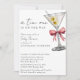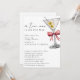 A Tini One Is On The Way Simple Minimal Pink Martini Baby Shower Invitation - A simple, minimalist, watercolor baby shower invitation for a baby girl. Featuring script calligraphy and sleek block font. A watercolor illustration of a dirty martini with two olives and a coquette pink bow adorns the upper right corner. Edit this baby shower invitation template with your own event details. All text is editable. Also available as an instant digital download, an eco-friendly way to send invites via text, email or social media.