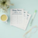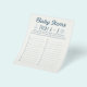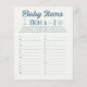 This fun baby shower game challenges guests to think of a baby item that starts with each letter of the alphabet. If their guess is the same as the mum-to-be's guess then they get a point. This game sheet has a blue and cream colour scheme with a nautical theme.