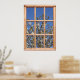 Catch a breath of spring air and admire the blossom and new leaves on a tree. This faux window view has a scene taken in springtime, on a sunny day with a blue sky. The cherry blossom and fresh leaves hold a promise of warmer days. The wooden frame has 9 panes and is a warm shade of pine. Perfect for creating a view on a windowless wall.