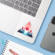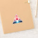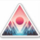 A Triangle Shaped Sticker with a Mountain Scene, symmetrical sticker design, flat surreal design, Design created in high-resolution quality.