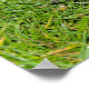 A turtle in the green grass between daisy