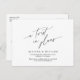 This is the modern minimalist clean script, design themed, in Black font, Wedding party invitation Rescheduled postcard (a twist in plans). It is the perfect and elegant way to make the reschedule announcement to your friends and family.