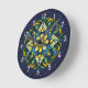 💚💙💛 TThis wall clock is a true masterpiece of both form and function. The face boasts a deep, rich navy blue, akin to the expanse of a star-studded night sky. Against this backdrop, a beautifully crafted floral pattern takes centre stage. Delicate, golden-yellow petals unfurl gracefully, their edges gently curling. These flowers are adorned with azure-blue centres, a hue that mirrors the vast expanse of the open sky.
