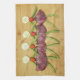 Our hibiscus skirted dancers in a chorus line across my butcher block. Use this towel to add a little whimsy to your kitchen!