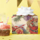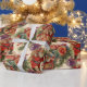 Vintage look wrapping paper with ornaments and Santa in fun colours.