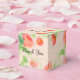The sweetest little wedding guest box in pastel colours Text for thank you, bride and grooms names and date can be personalised to your own special events message. Text is also removable. Prettiest little design in pink coral rose flowered print. The light background colour can be personalised to any colour, however looks prettiest in the lighter colour as shown or white.