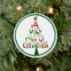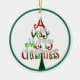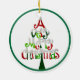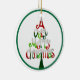 Round ceramic ornament with an image, on both sides, of a whimsical Christmas tree formed with the words “A Very Merry Christmas” in red and green snowcapped letters. Green border. See matching acrylic photo sculpture ornament. See the entire Christmas ornament collection under the HOME category in the HOLIDAYS section.