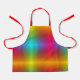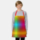 A vibrant apron with a rainbow gradient pattern, featuring red straps. The design exudes a playful and cheerful atmosphere, perfect for lively cooking.