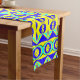 Table runner, A vibrant colourful fabric print pattern design. Introducing our short table runner fabric cloth, featuring a classy, trendy, and unique design with multiple vibrant colours. This versatile runner adds a stylish touch to any table setting, making it perfect for both everyday use and special occasions. Its high-quality fabric ensures durability, while the attractive patterns make it a statement piece that enhances the decor of any room. Ideal for creating a chic and modern look, this table runner is the perfect blend of elegance and contemporary design.