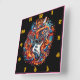 A vibrant electric guitar bursts with energy square wall clock