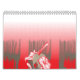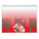 A vibrant graphic design features a red, patterned calendar