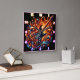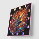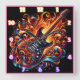 A vibrant guitar surrounded by swirling flames square wall clock