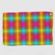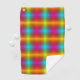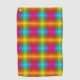 A vibrant, multicolored towel with a kaleidoscope-like pattern of overlapping circles in blue, pink, yellow, and green hues, creating a joyful, energetic tone.