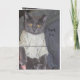 Funny thank you greeting card, a kitty cat in a knitted sweater with pearl buttons. Personalize the thank you text to any occasion.