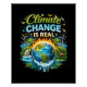 A blazing Earth surrounded by melting ice, wildlife, and renewable energy warns of the urgent reality of climate change.