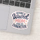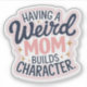 Celebrate your quirky mum with this fun and relatable sticker! Featuring the phrase "Having a Weird Mum Builds Character" in a playful design, this sticker is a lighthearted tribute to all the moms who embrace their unique personalities and make life more interesting. Made with durable vinyl, this sticker is perfect for laptops, water bottles, journals, and more.