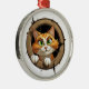 A Whimsical Cartoon Cat with Bright Green Eyes Pee Metal Ornament