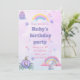 A Whimsical, pink and purple fairytale unicorn, castle and beautiful carriage invitation!