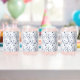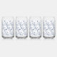 a white and blue background with a pattern can glass