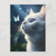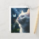 A White Cat with Blue Eyes Looks at a Butterfly Postcard