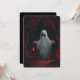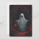 A white ghost holding a red lantern with red leave invitation