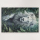 An ink painting of a majestuous white lion as a puzzle, A.I partial art