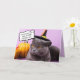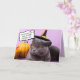 This fun Halloween card features a black cat wearing a witches' hat surrounded by pumpkins on a light purple background. Easily change or remove the text by clicking "Personalise this Template".