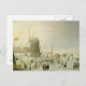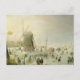 A winter scene with skaters by a windmill postcard