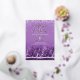 Winter wedding purple and white pine trees in the snow by the lake gouache and watercolor art invitations. Personalise with your own wedding details. Ideal for a Christmas or lakeside winter wedding. Title reads, It is a Winter Wedding. © Gouache and watercolor painting and design by Sarah Trett www.sarahtrett.com for www.mylittleedenweddings.com