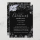 The image shows a Christmas-themed design with a dark background covered in snowflakes and holiday decorations. The central text invites viewers to join a Christmas celebration.