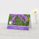 Pretty purple flowers and a beautiful Butterfly bring wishes for a Happy Birthday. The verse inside brings wishes for happiness, love and laughter. This card is certain to make someone feel loved on their special day.