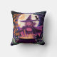 A witch in a dramatic pose stirs her bubbling cauldron, surrounded by mystical elements and a playful black cat, all illuminated by a glowing full moon.
