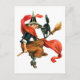 A Witch Flies on Her Broom with her Black Cat Postcard