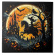A witch rides under a spooky harvest moon ceramic tile