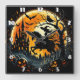 A witch rides under a spooky harvest moon square wall clock
