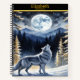 A wolf howls beneath a full moon in a snowy forest notebook