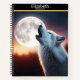 In a dimly lit sketchbook, a magnificent wolf raises its head towards the sky, howling passionately. The large, glowing moon casts a serene light over the landscape, blending beautifully with the deep hues of twilight, creating a magical atmosphere.