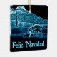 A lone wolf (Canis lupus) traverses a snowy landscape in this simple, dark, stylised image. Moonlight reflects off the snow and birch tree. Spanish text reading, "Feliz Navidad" appears in glowing blue and white. Add your own additional text on the reverse side.