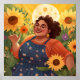 A vibrant illustration of a proud, plus-size Mexican-American woman wearing a traditional Mexican blouse and overalls. She is honouring the spirit of the moon in the moonlight in her backyard garden. There are sunflowers and flowery vibes. She is joyful and thriving. She is owning her resilience and power. Customise any product with A Woman’s Strength and Joy in Moonlight Garden design. Your space should reflect who you are and what you care about. Adding a pop of colour to your walls is an easy way to find joy and celebrate culture.