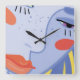 a woman's face with a bright lipstick. square wall clock