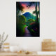 Embark on a serene journey along a wooden path that winds through a lush green bamboo forest, leading you towards a massive, sleeping volcano on the distant horizon. The tall bamboo stalks form a natural canopy over the path, creating a tranquil ambiance. As you walk, the dormant volcano stands majestically, adding a sense of awe to the enchanting scenery. Immerse yourself in the beauty of this picturesque digital art, where the wooden path invites you to explore the magic of the bamboo forest while gazing upon the slumbering giant in the distance.