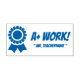 This positive rubber stamp design features the message "A+ WORK!" and a personalised educator's name. It also features a decorative prize ribbon icon. It could be used by a school teacher, educator, or tutor when grading student work, to acknowledge that a student has done an exceptional job.